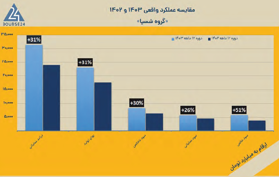 این نسبت بنیادی در دوره ۱۴۰۲ برابر با ۱۶ درصد بوده و این یعنی شاهد بهبود ۱۵ درصد قدرت سودسازی گروه «شسپا» در یک سال اخیر هستیم. عملکرد دوره ۱۴۰۳ گروه «شسپا» به‌سود خالص ۵.۷۶ همتی ختم شده که در قیاس با دوره ۱۴۰۲ مبین رشد ۵۱ درصد است.