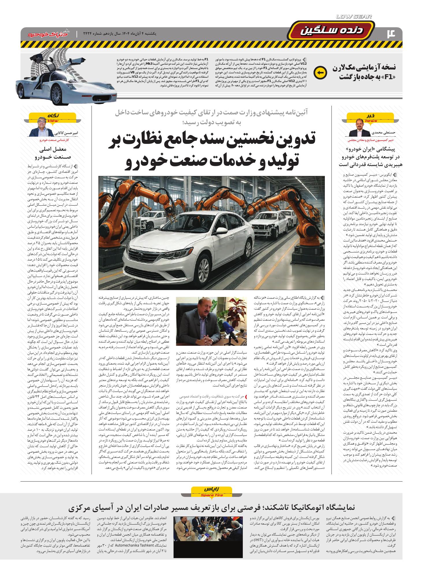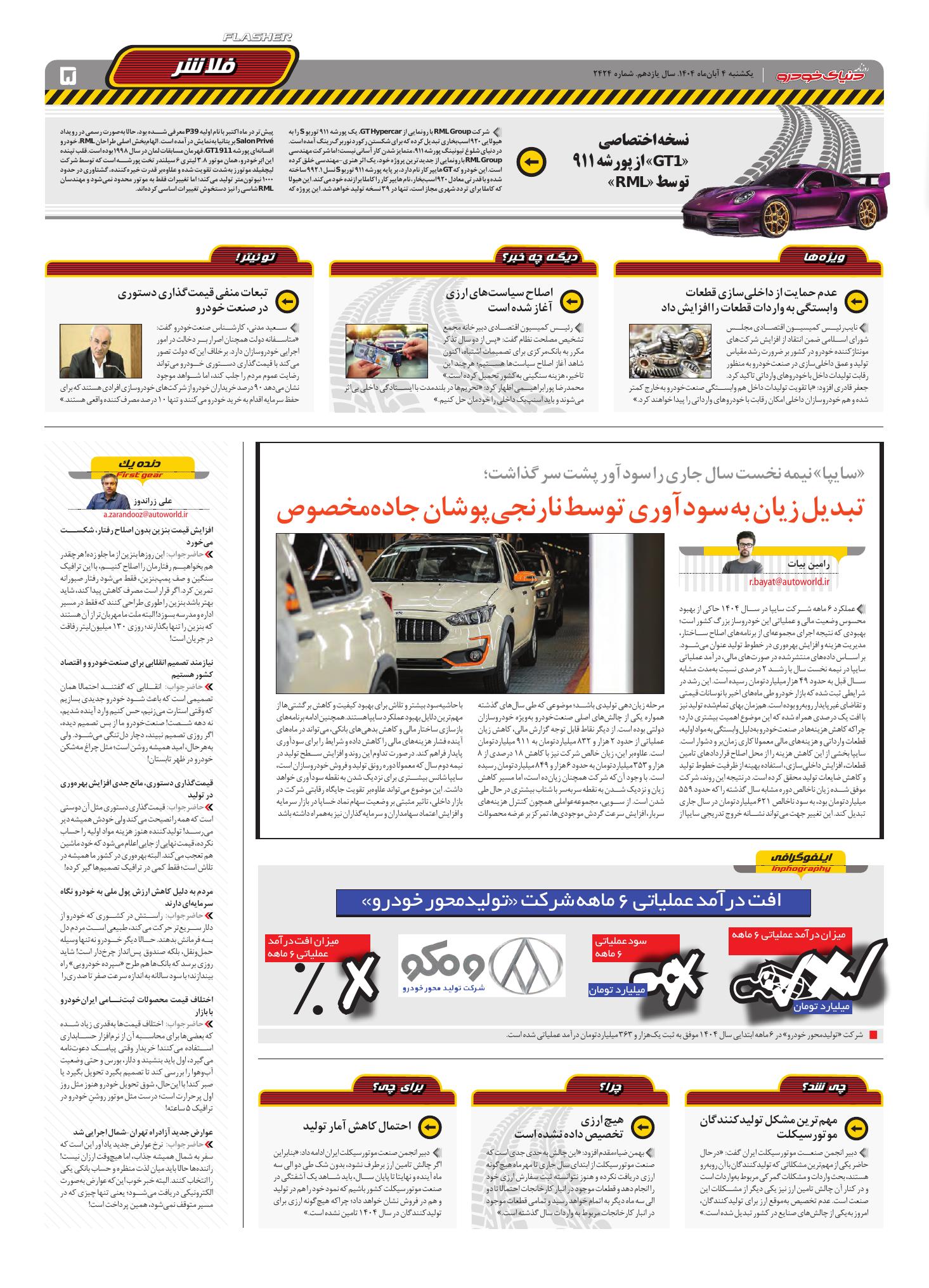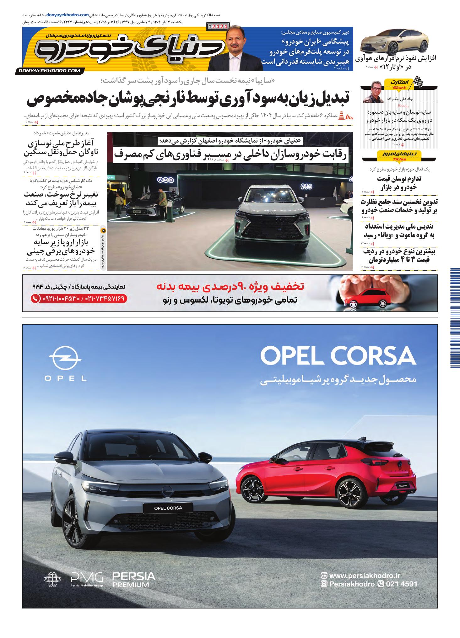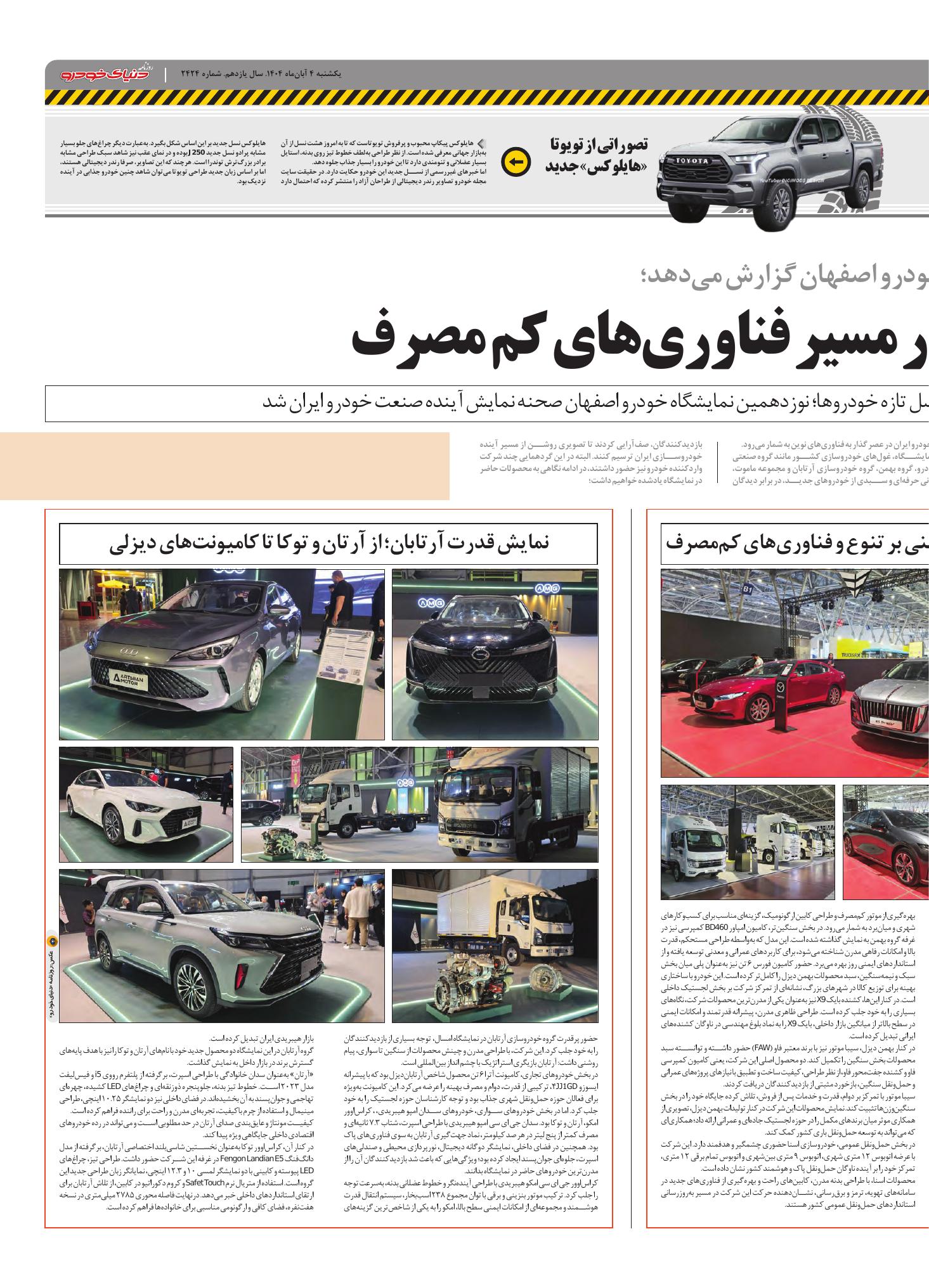 روزنامه دنیای خودرو - شماره 2424