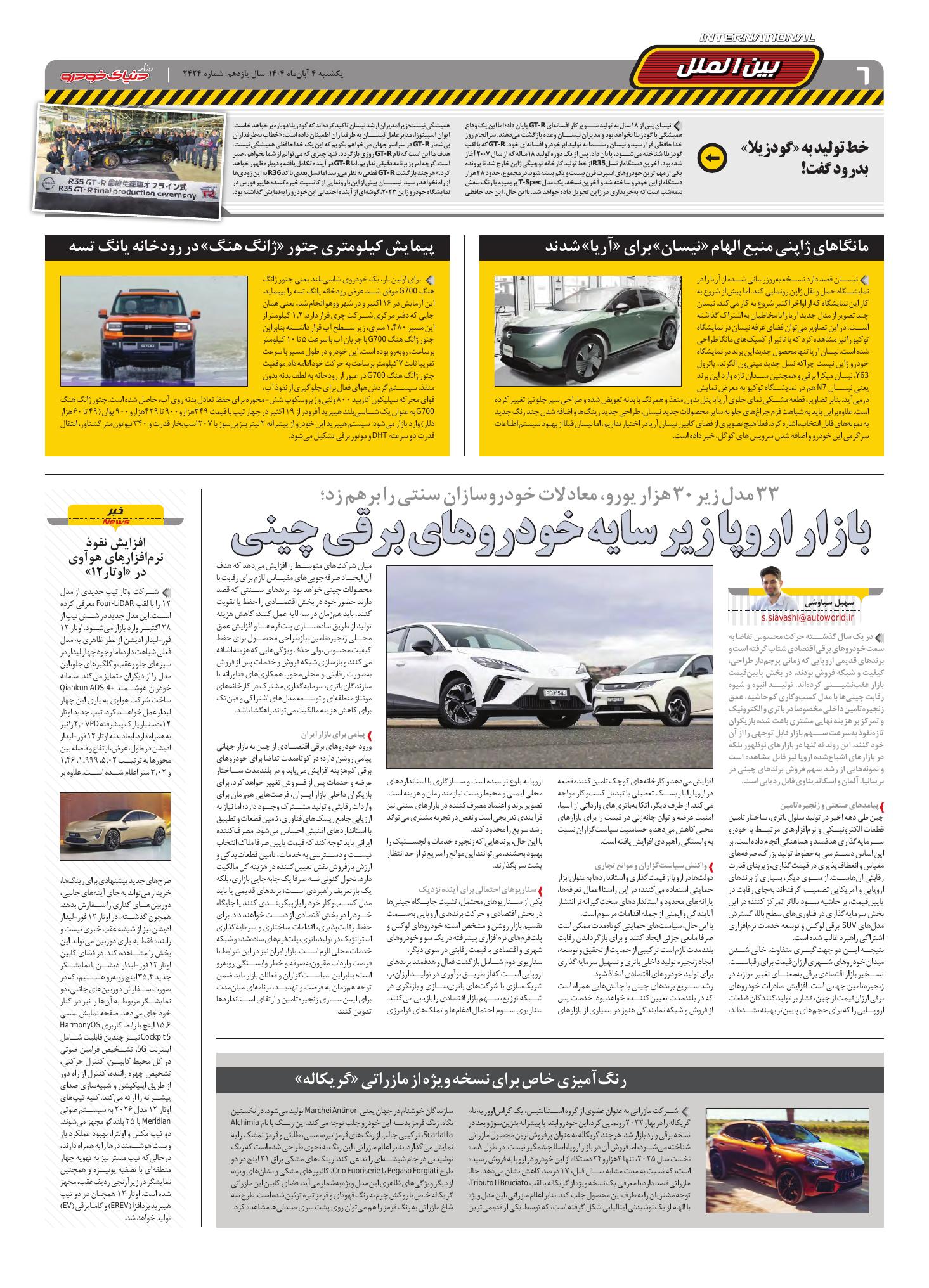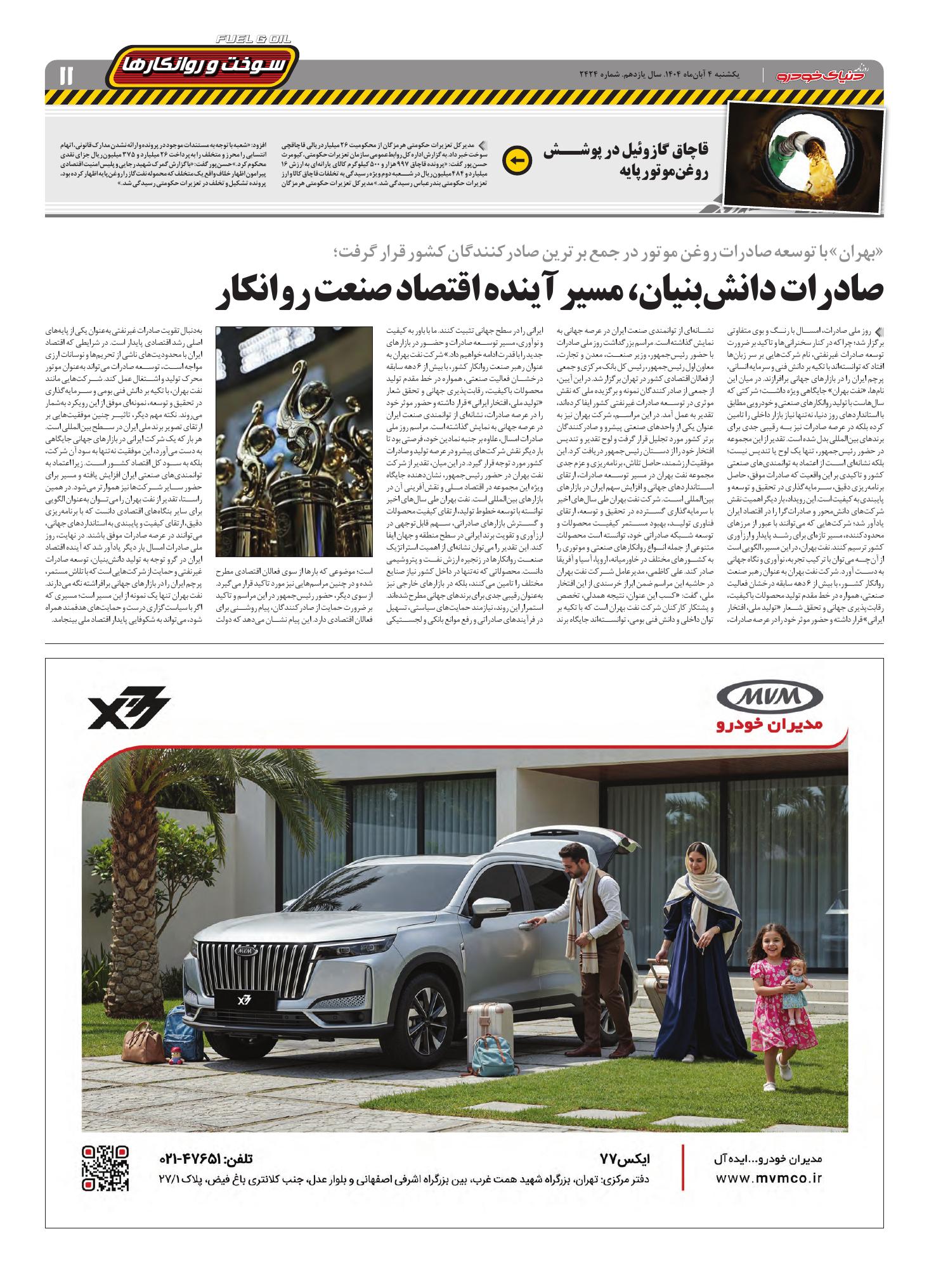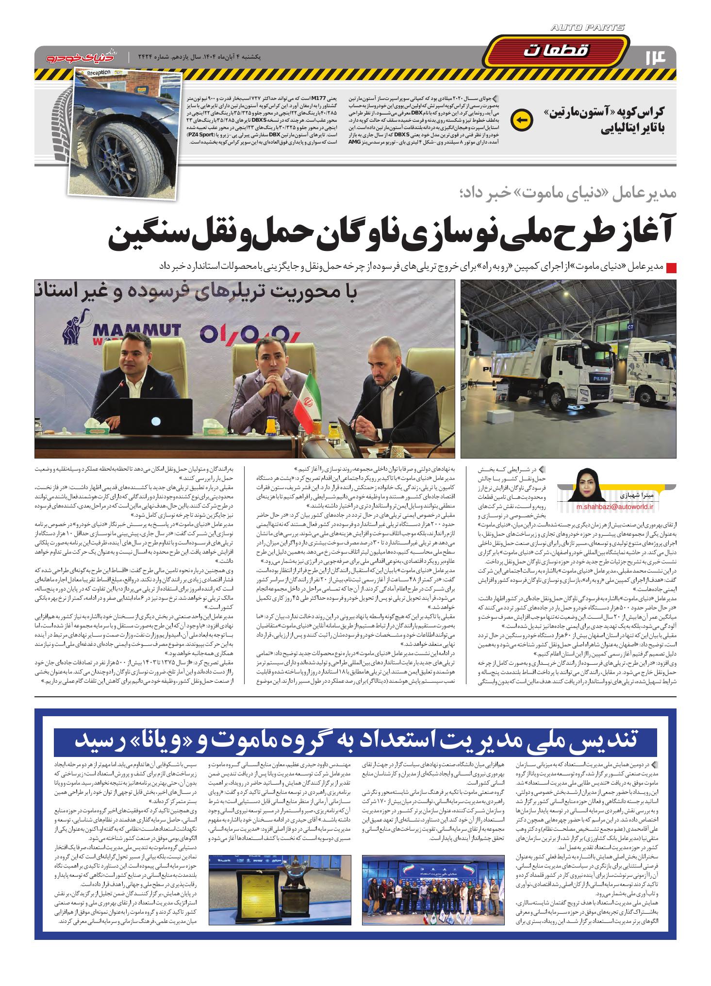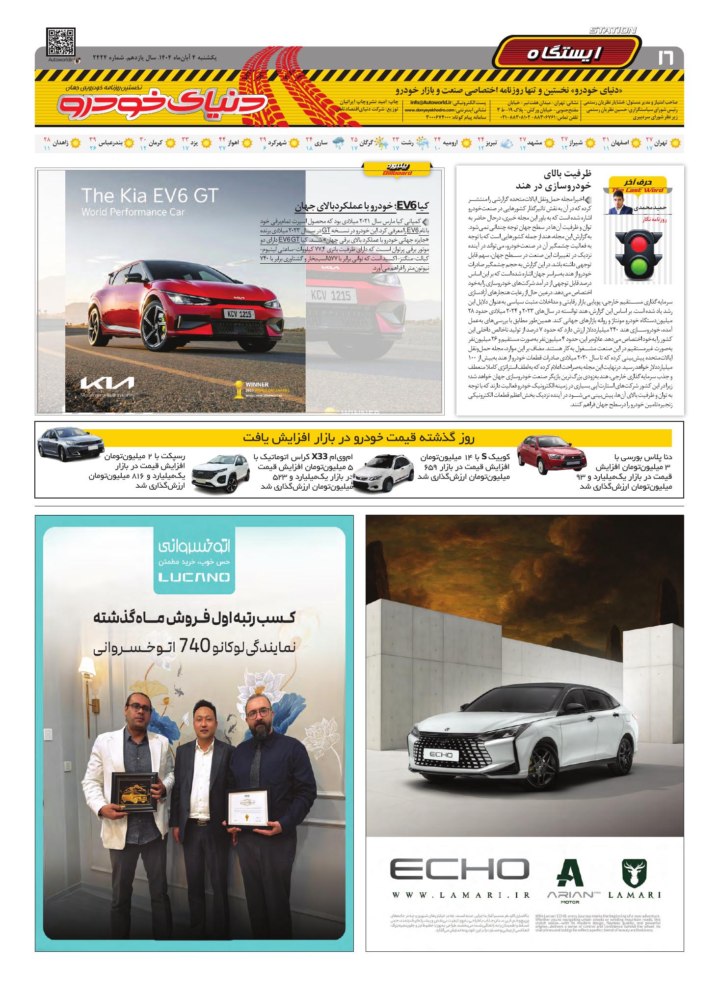 روزنامه دنیای خودرو - شماره 2424