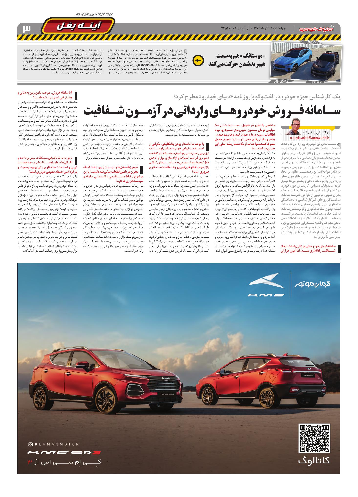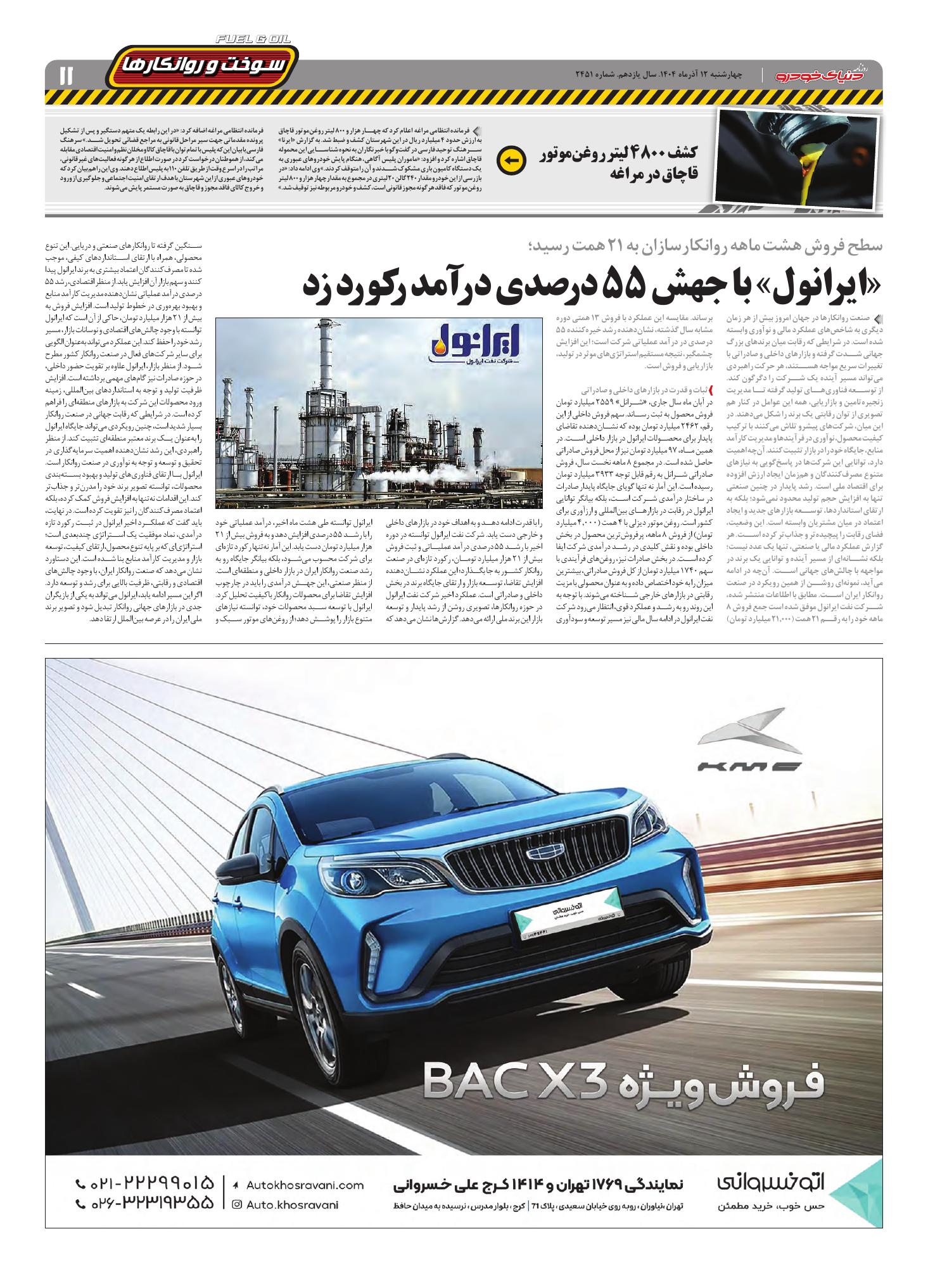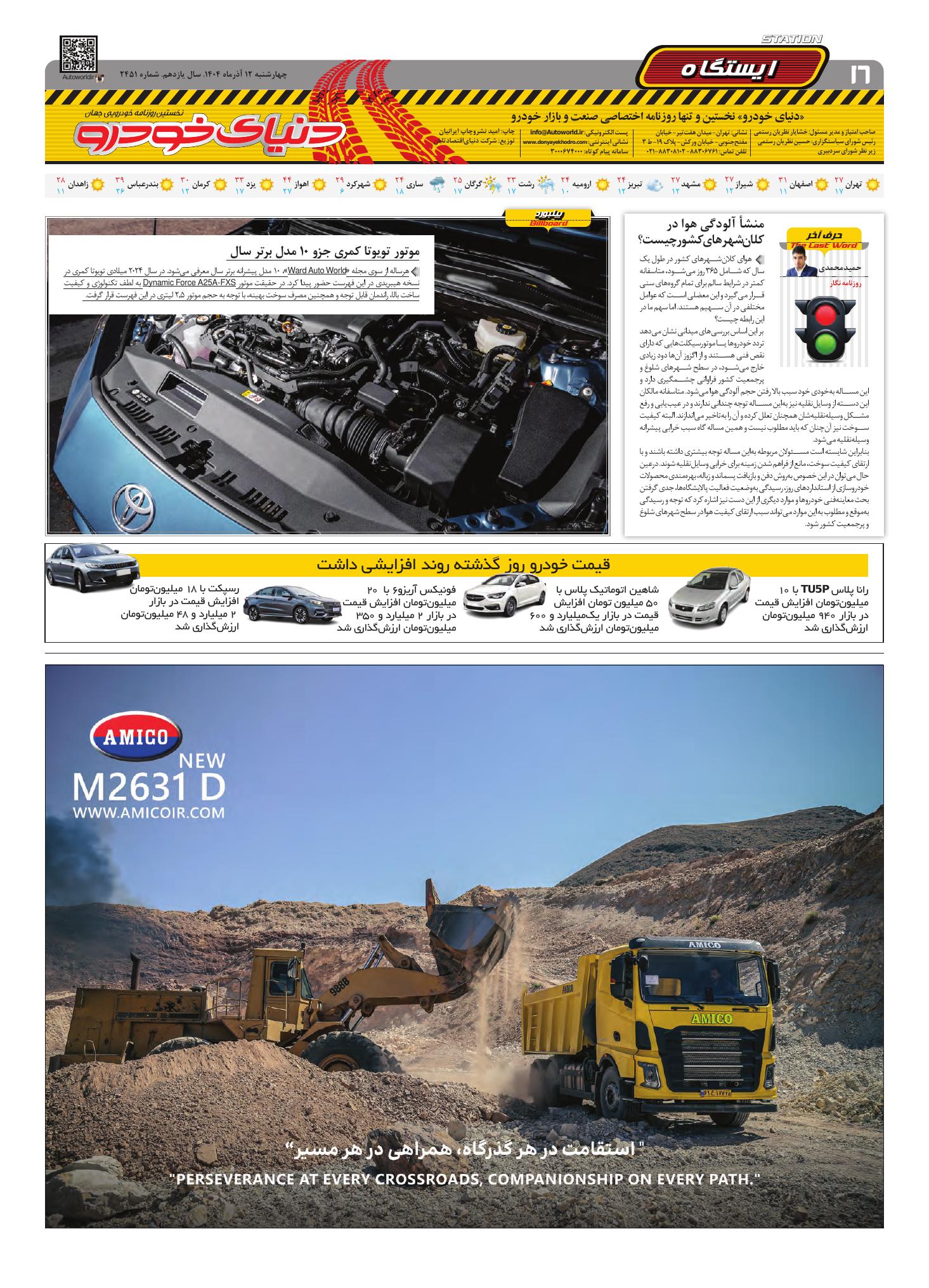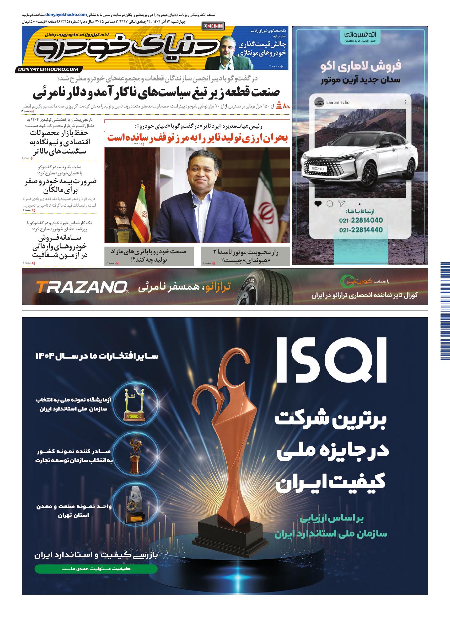 روزنامه دنیای خودرو - شماره 2451