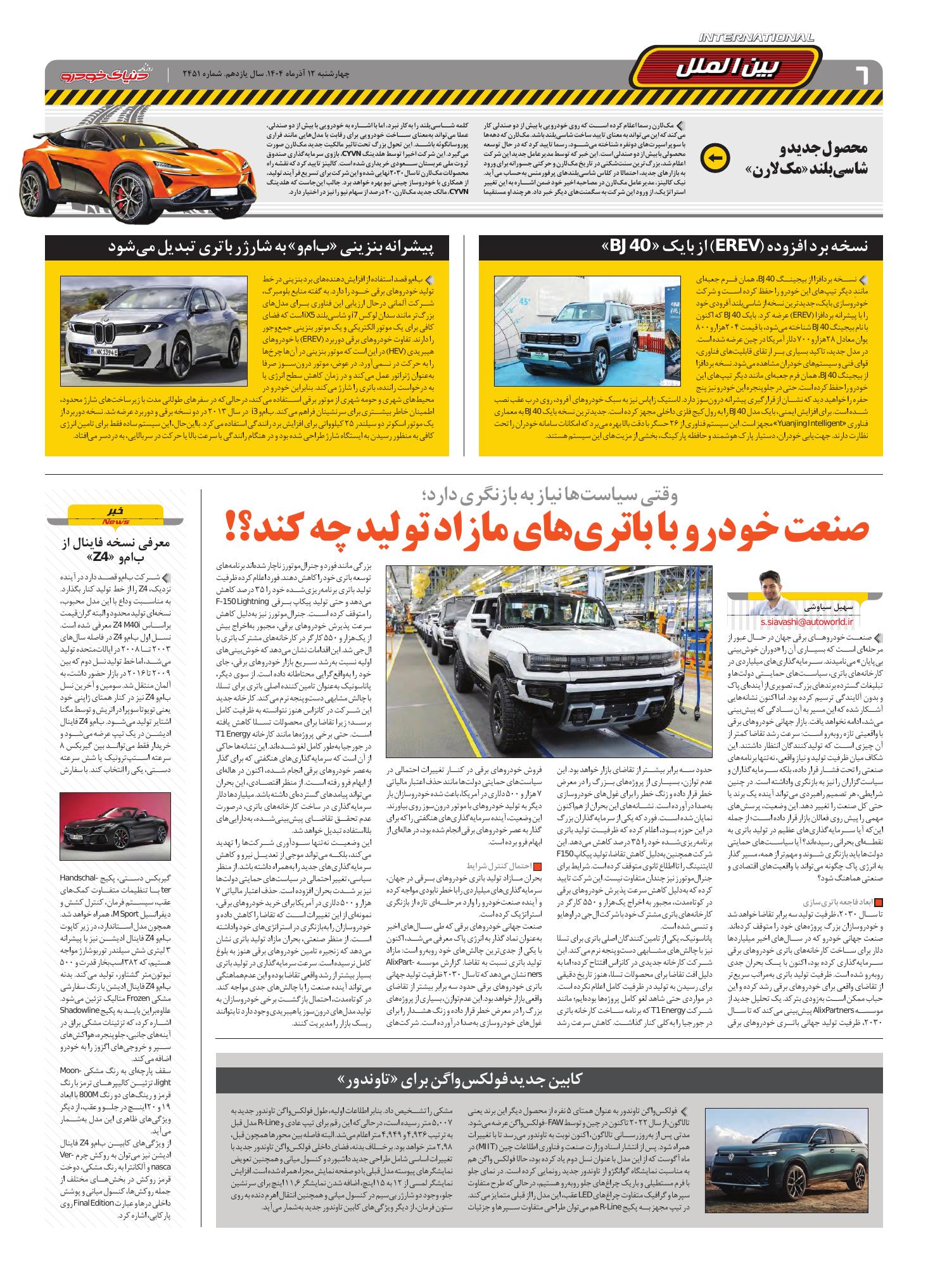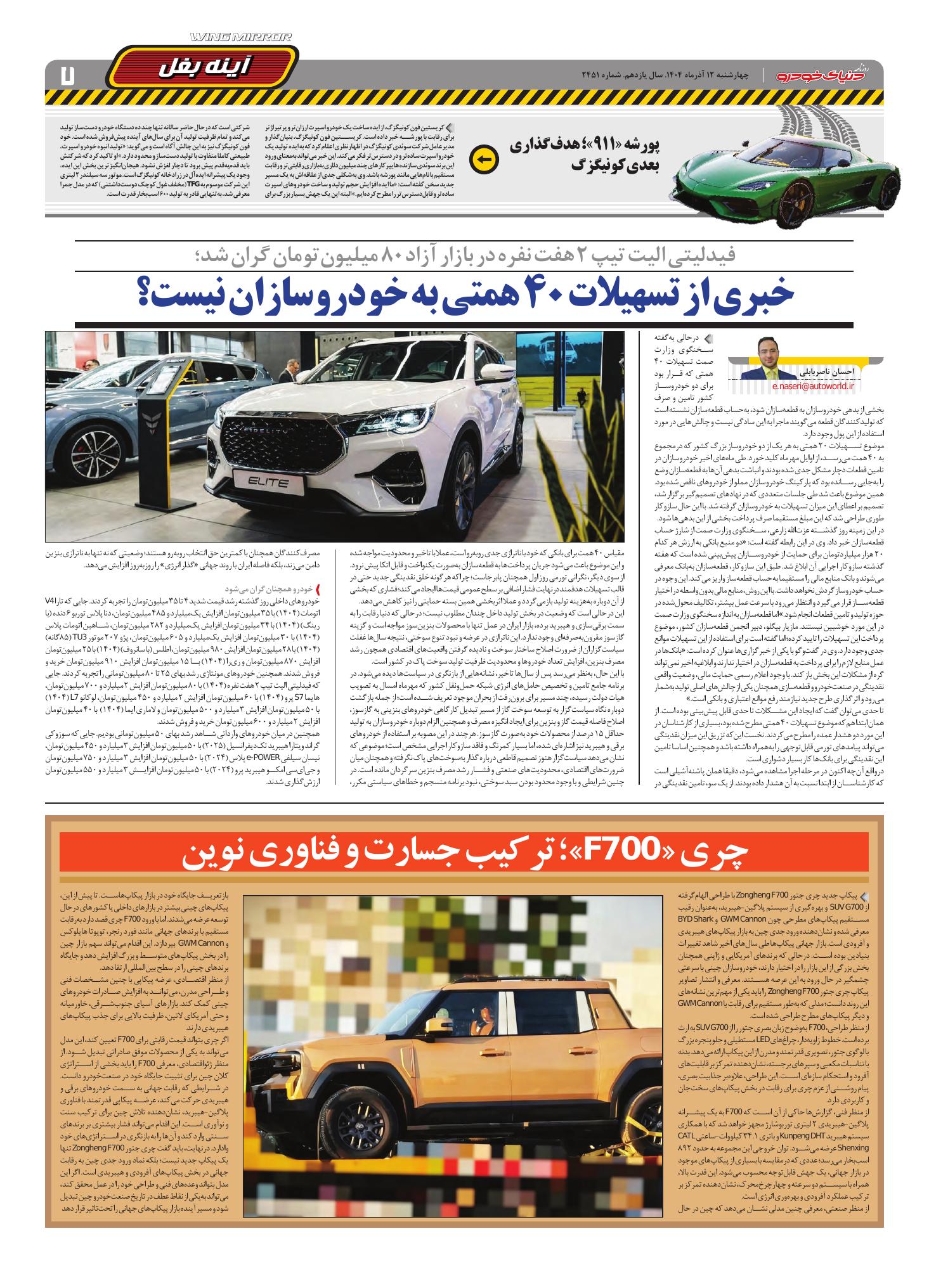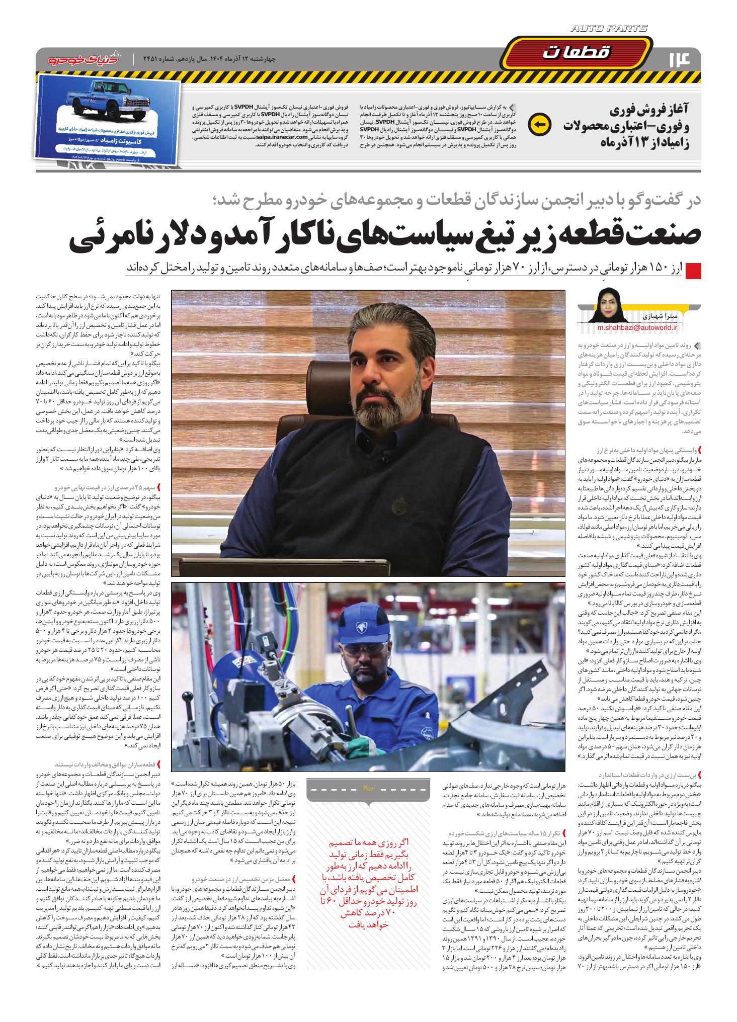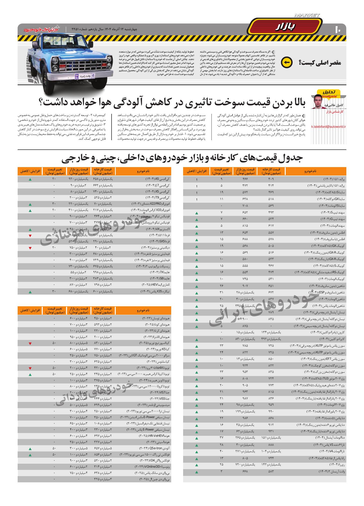 روزنامه دنیای خودرو - شماره 2451