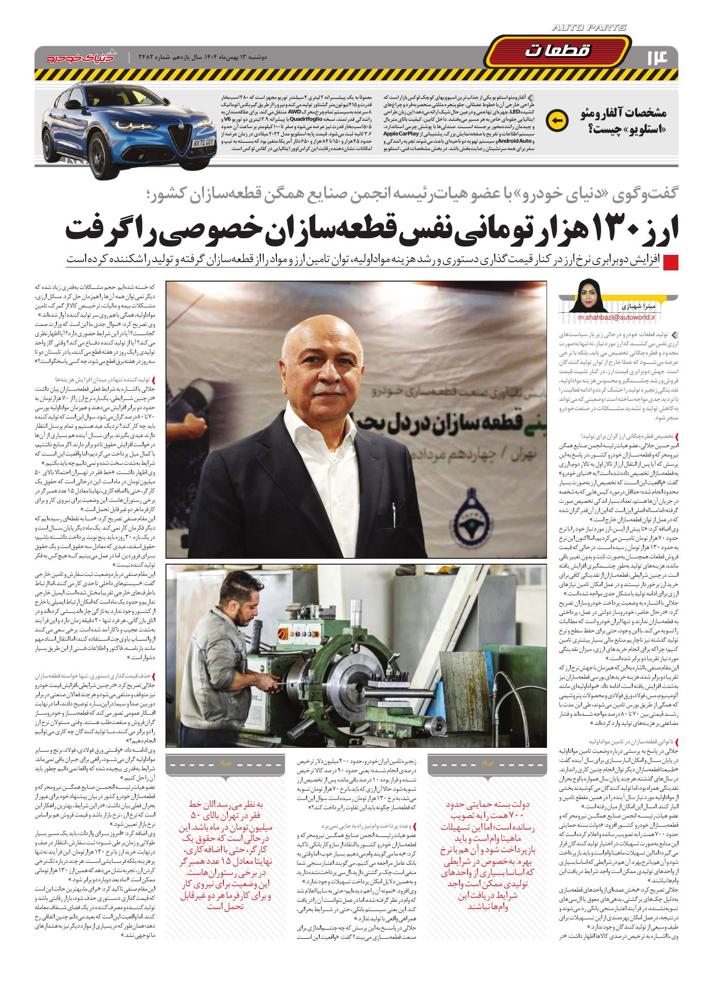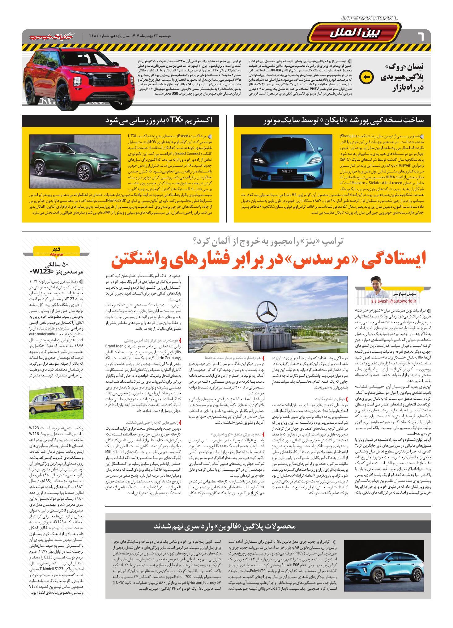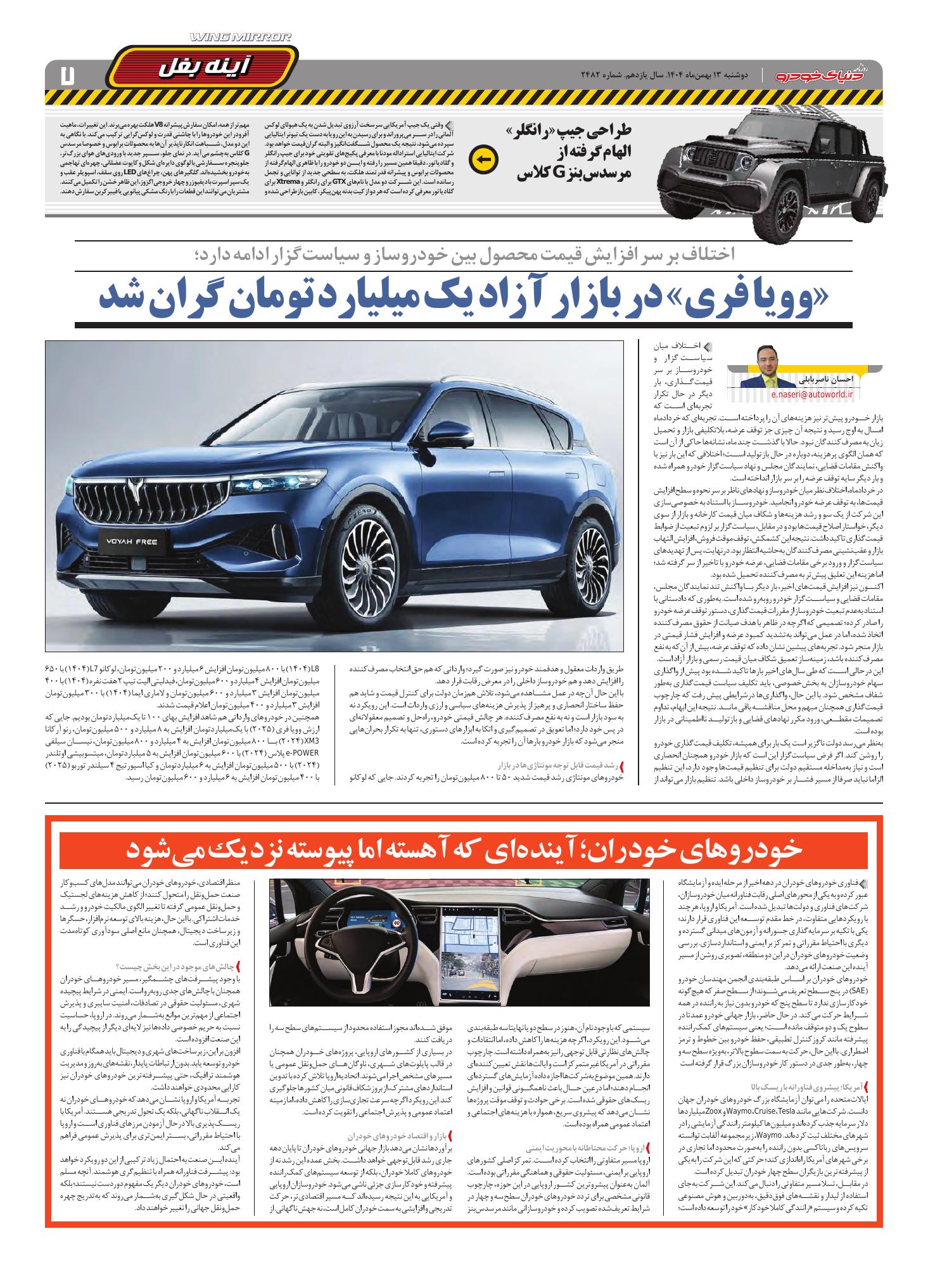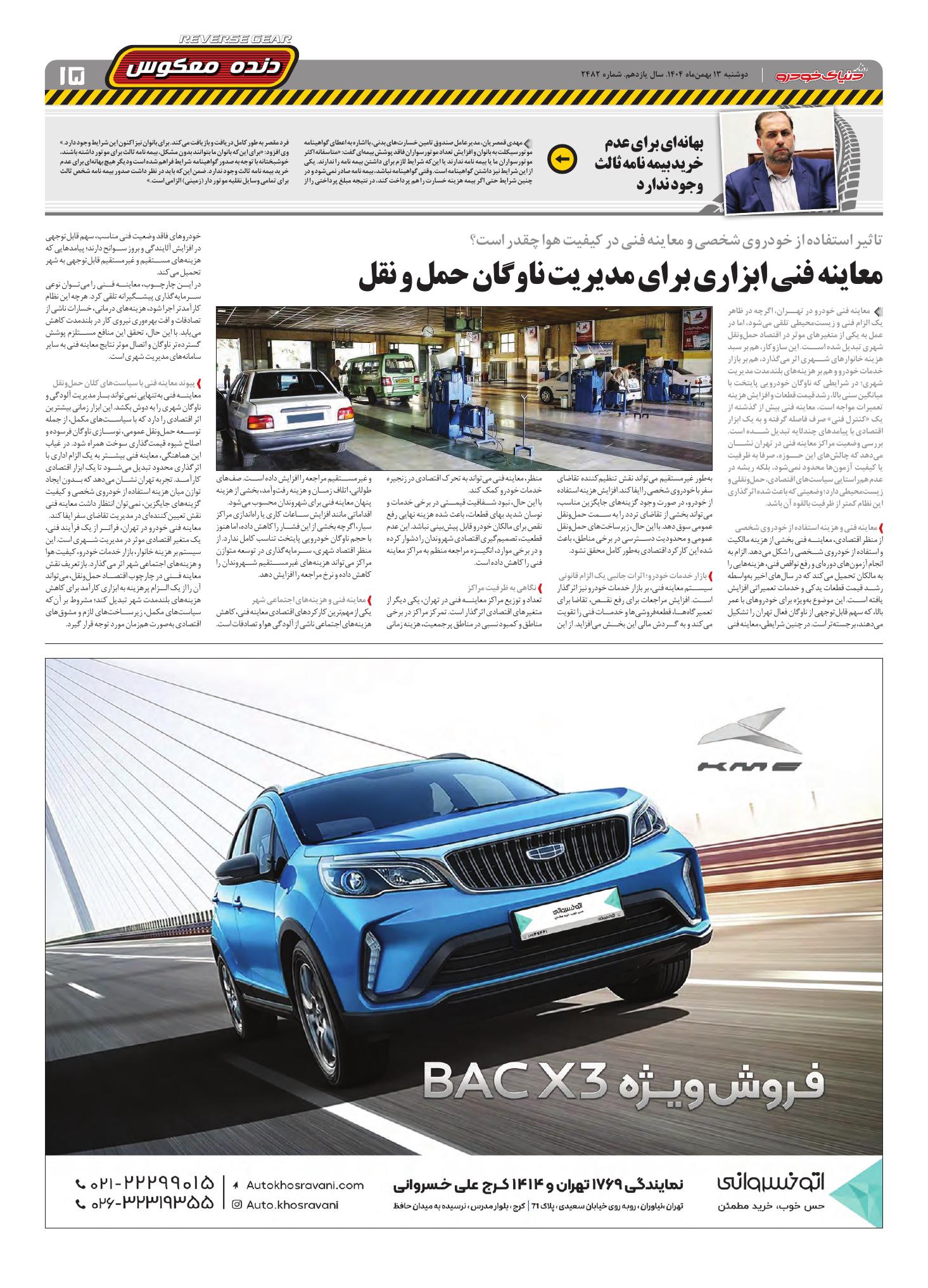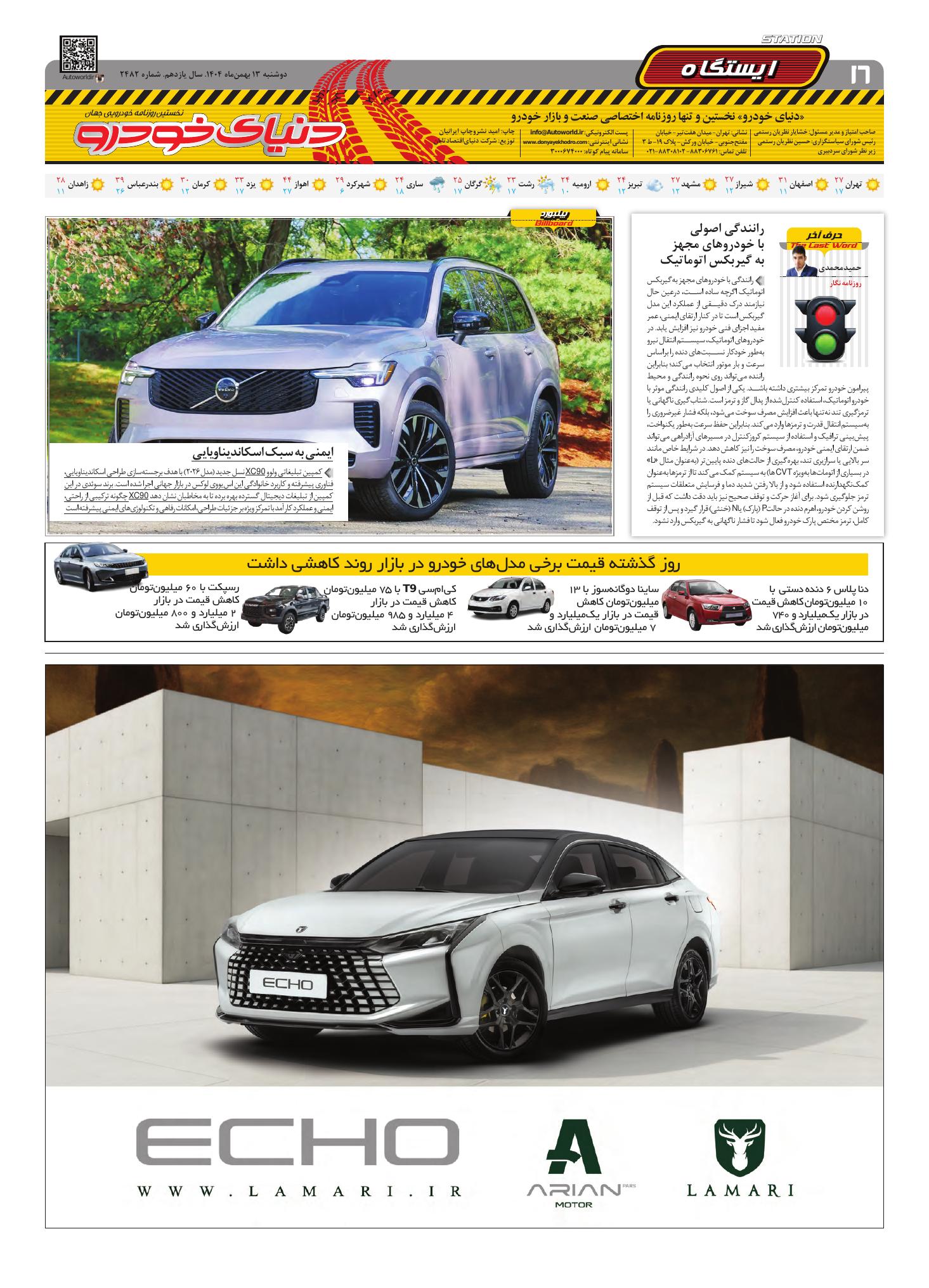 روزنامه دنیای خودرو-شماره 2482