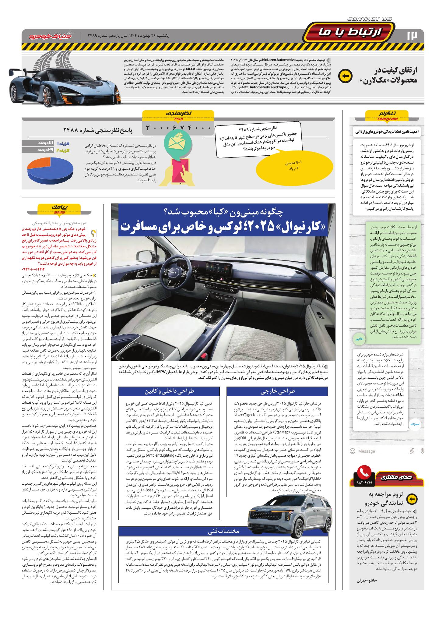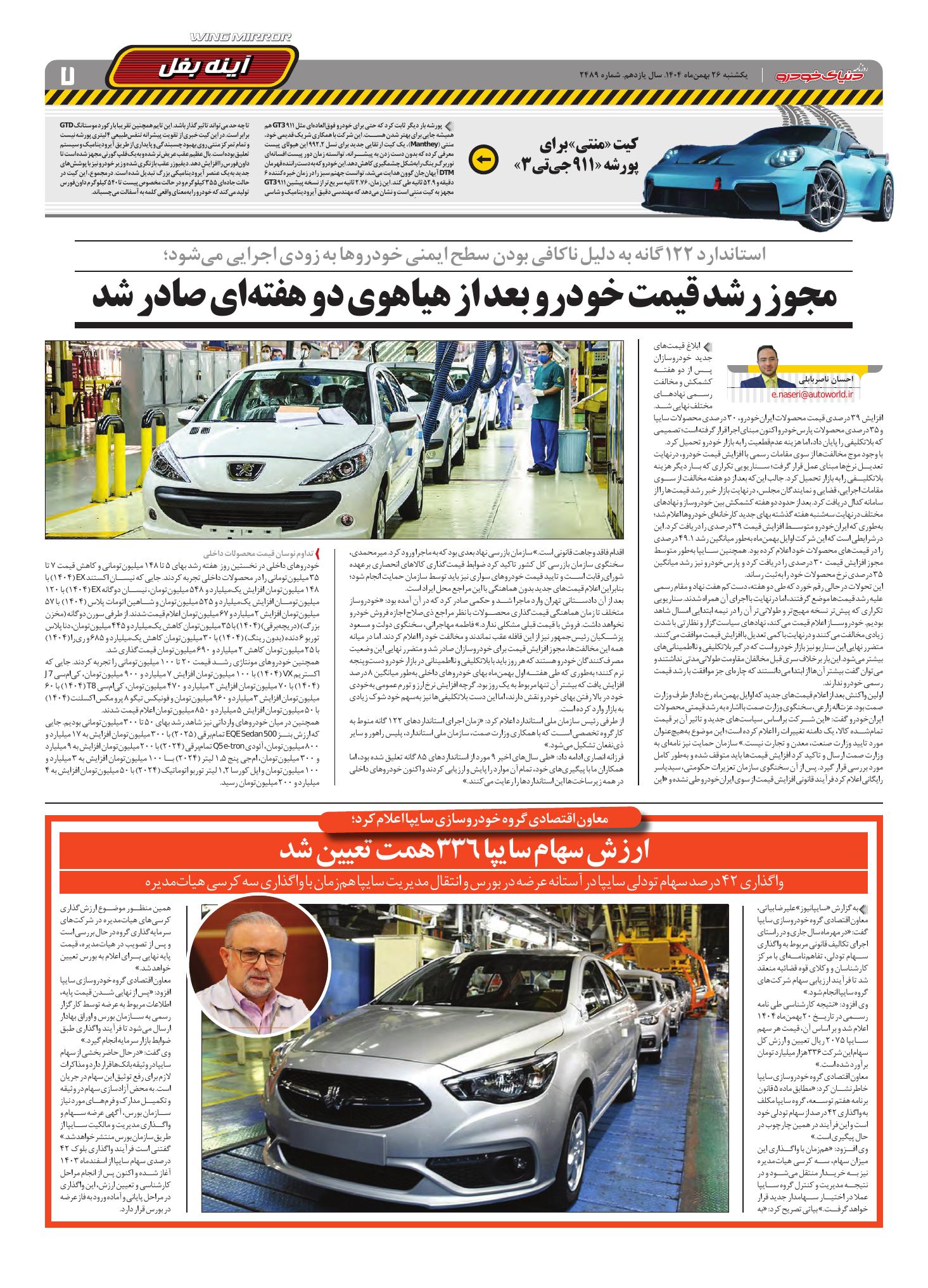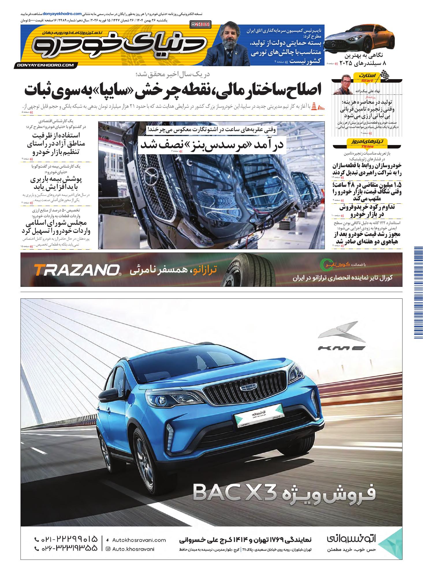 روزنامه دنیای خودرو-شماره 2489