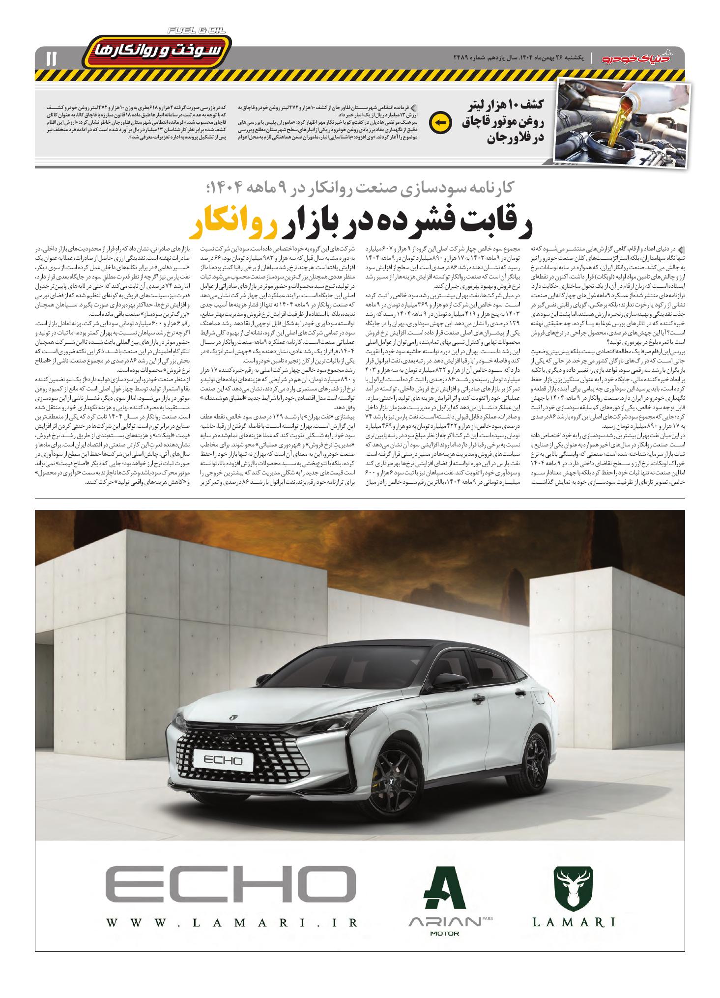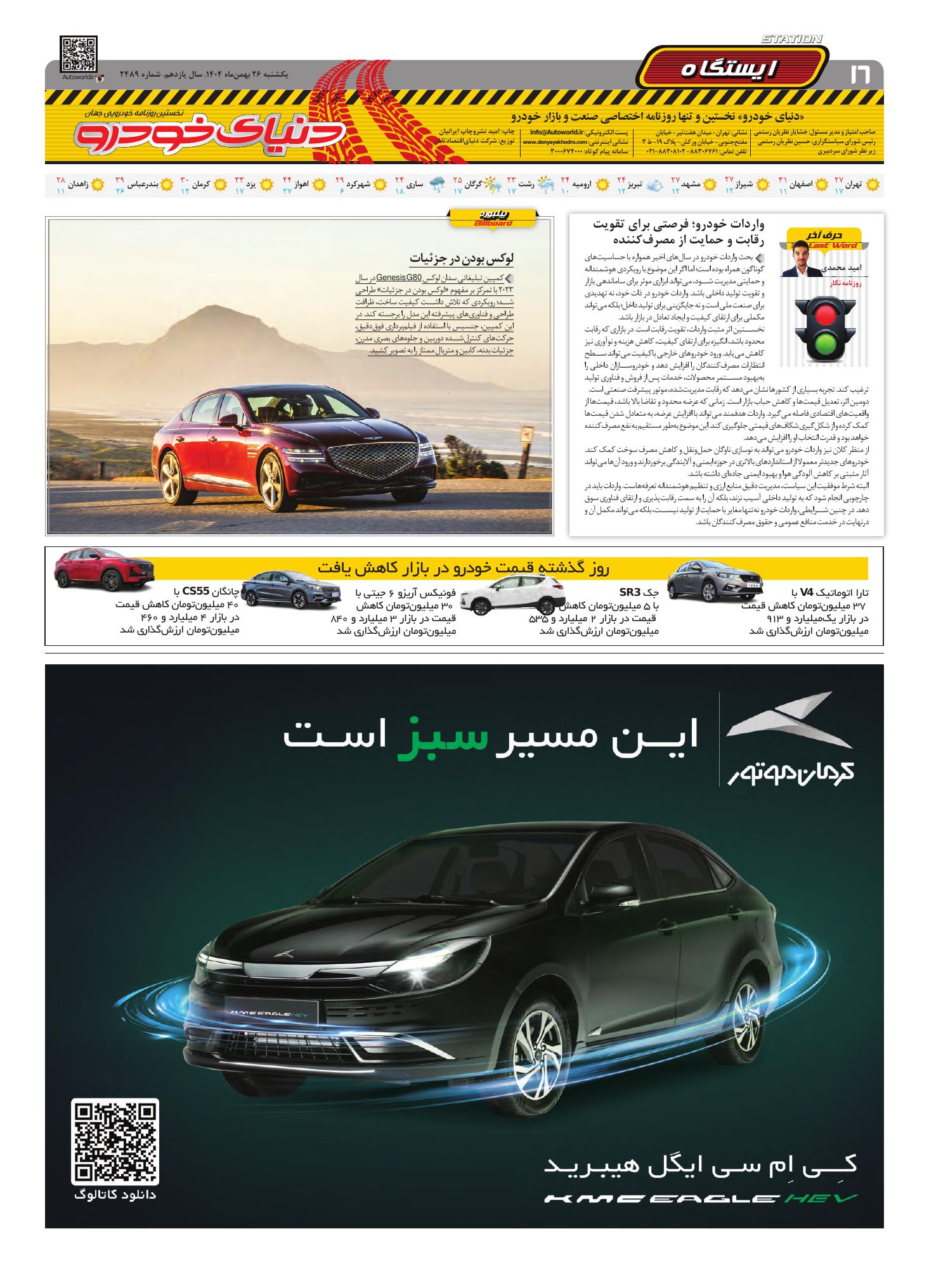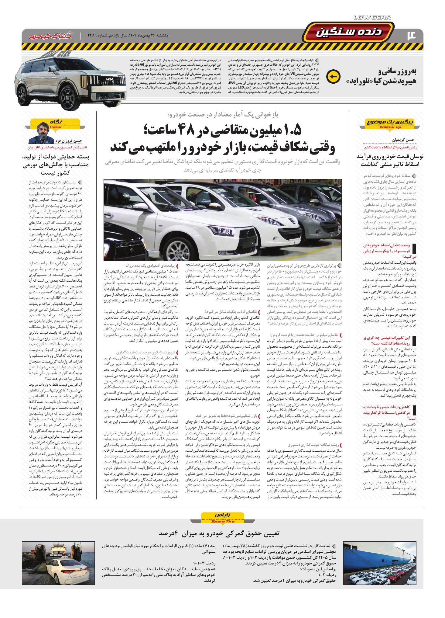 روزنامه دنیای خودرو-شماره 2489