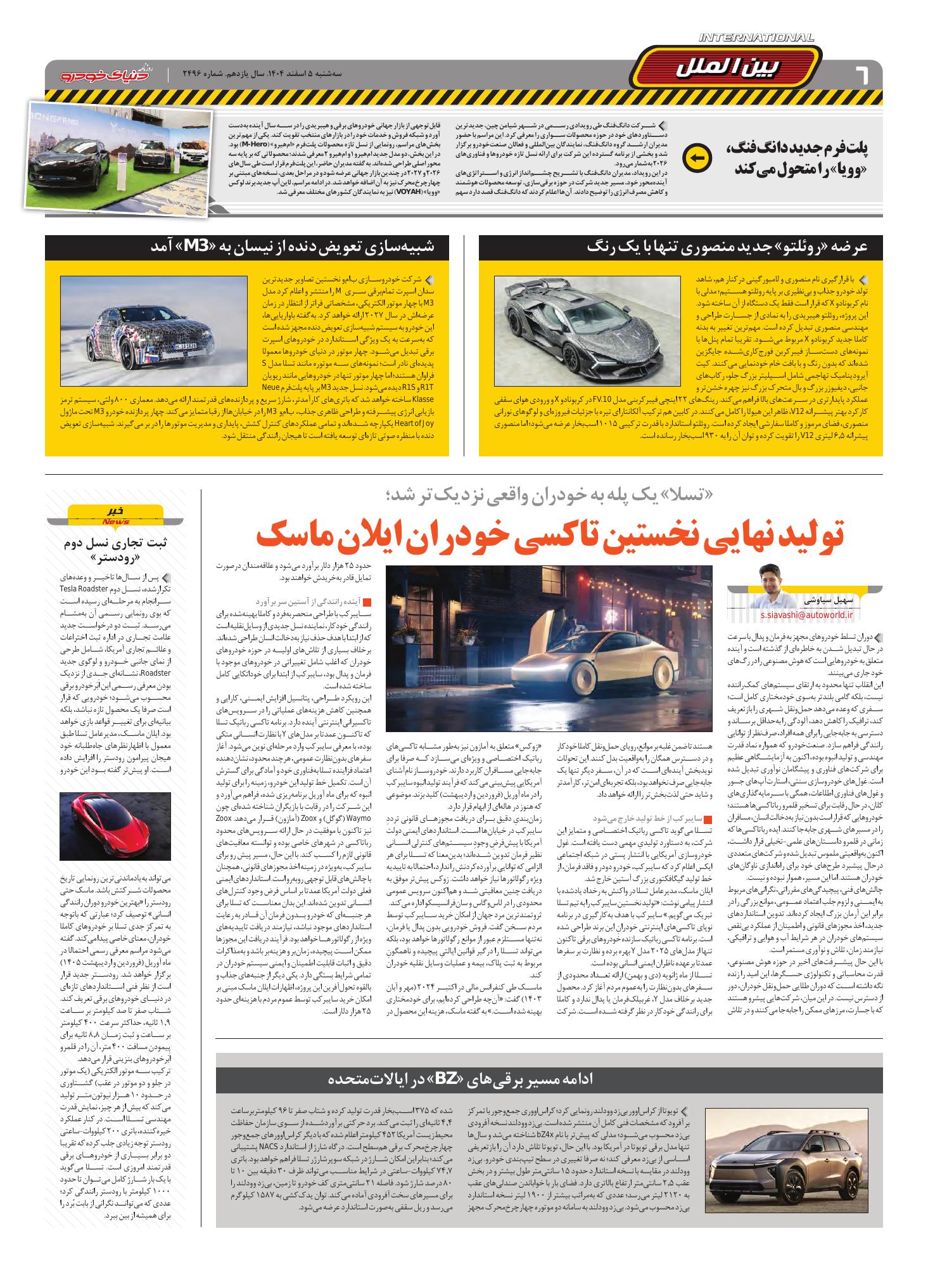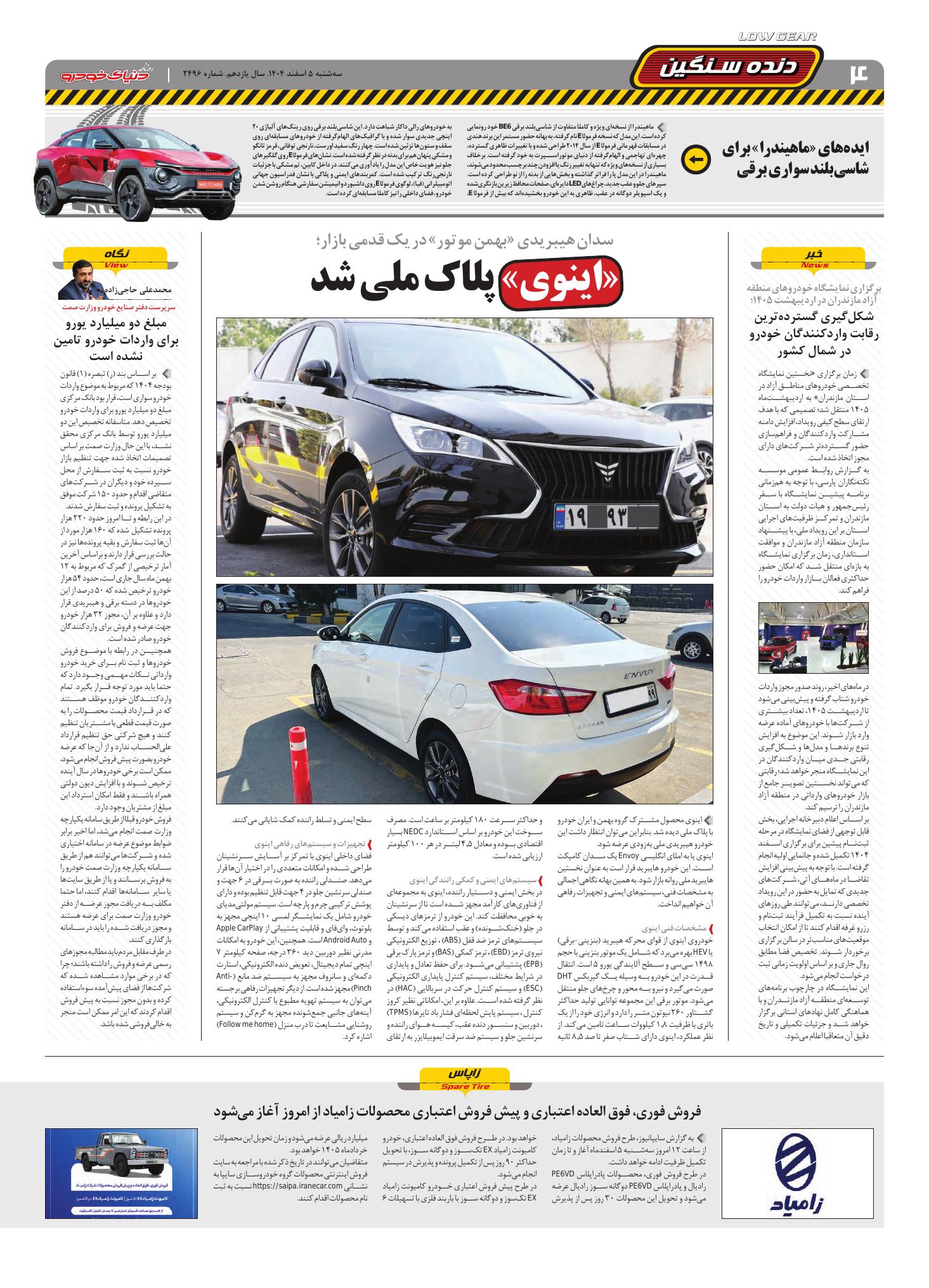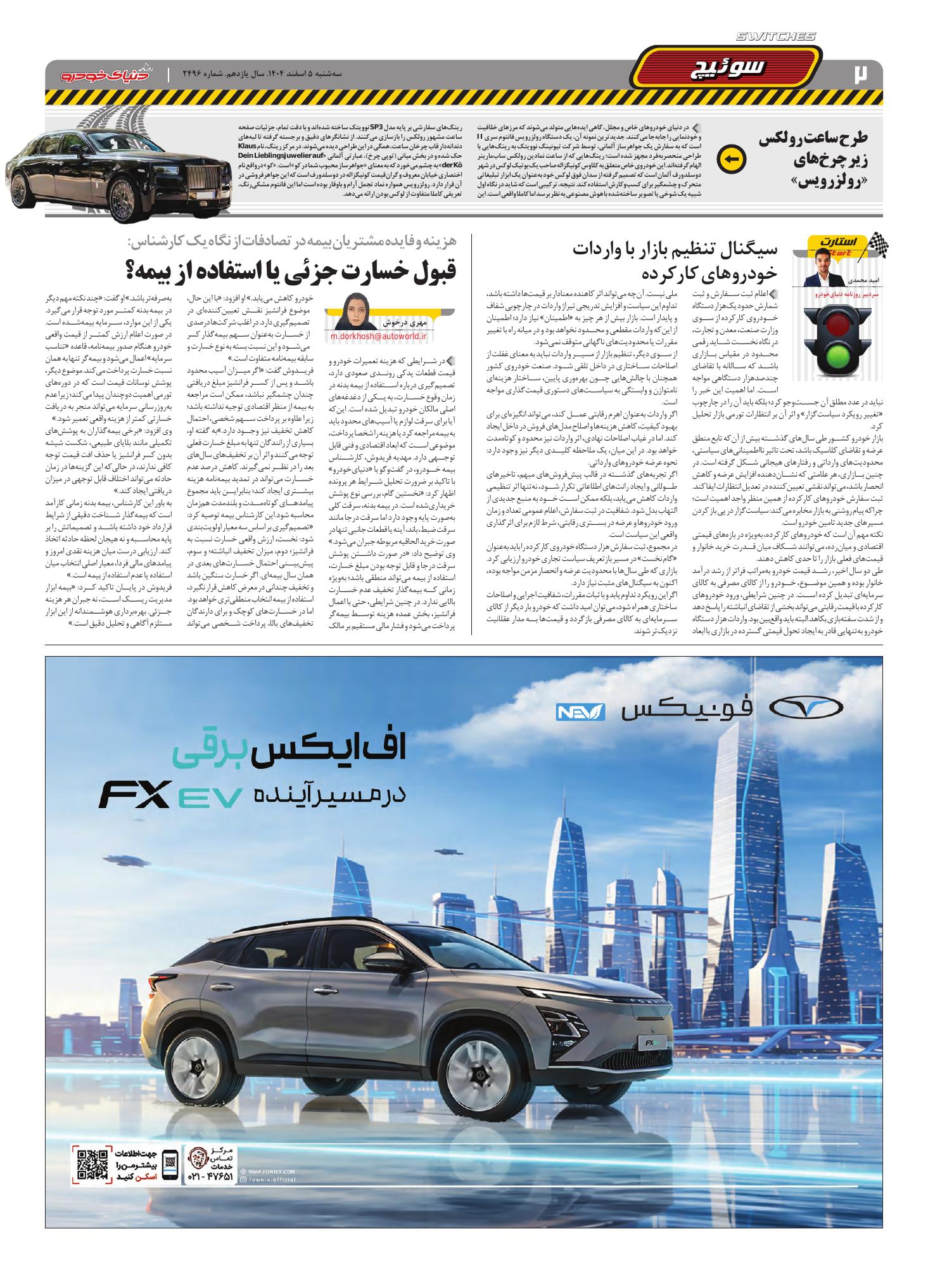روزنامه دنیای خودرو-شماره 2496